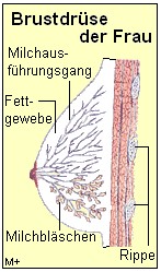 Die Brustdrüse (Mamma) besteht aus Drüsengewebe, das in Binde- und