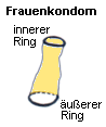 Ringen stabilisiert wird. Der Ring am geschlossenen Ende des Frauenkondoms ist etwas