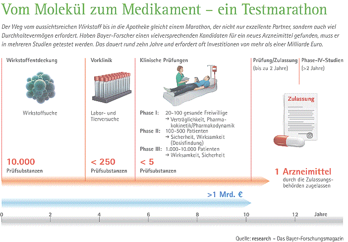 eines neuen Arzneimittels erfolgreich durchlaufen werden müssen, und eine sich daran