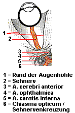 in den Sehnerv eintritt. Im hinteren Abschnitt wird der Sehnerv von der A. carotis interna
