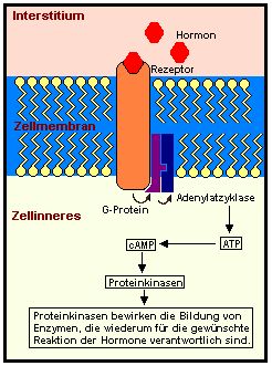 Rezeptor in der Zellwand befindet, aktiviert. Das G-Protein aktiviert seinerseits die