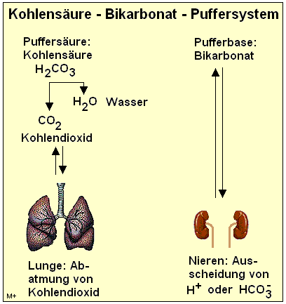 Puffersystem des Organismus ist das Kohlensäure-Bikarbonat-Puffersystem oder einfach der
