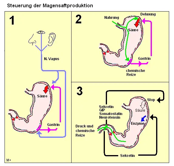Bildung von Magensaft vollzieht sich in drei Phasen: