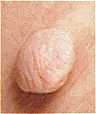 sich zu einem weichen Knoten entwickelt hat. Es haftet durch eine stielartige Verengung