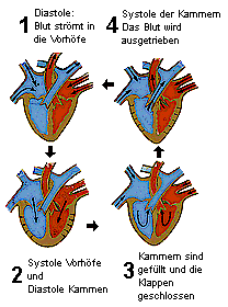 geschlossen bleiben. Das Blut aus den Vorhöfen fließt in die Kammern. Diese Phase wird Diastole