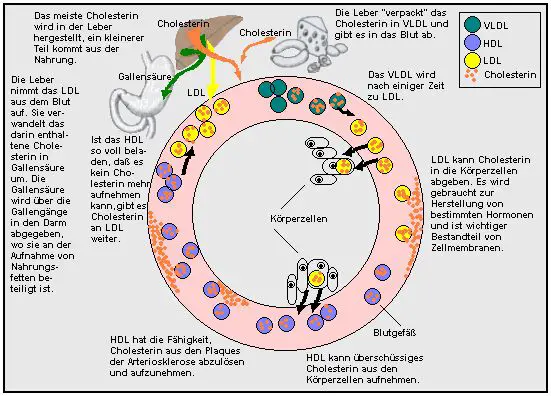 kann Cholesterin auch im Blut abgeben, wo es sich dann in Form von Arteriosklerose an den Gefäßwänden ablagert. Das