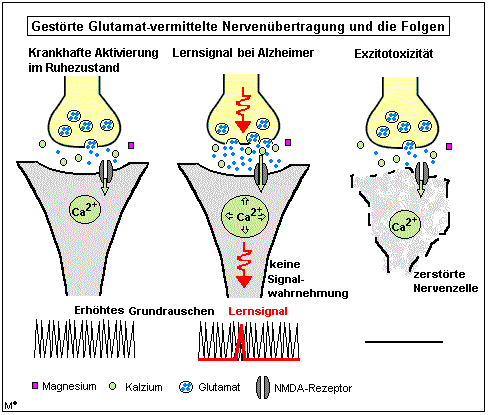 einem Funktionsverlust und schließlich zum Absterben der Nervenzelle. Die durch Glutamat