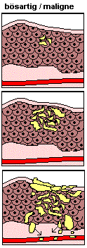 hinaus. Sie wachsen in die umgebenden Gewebe hinein und zerstören die örtlichen