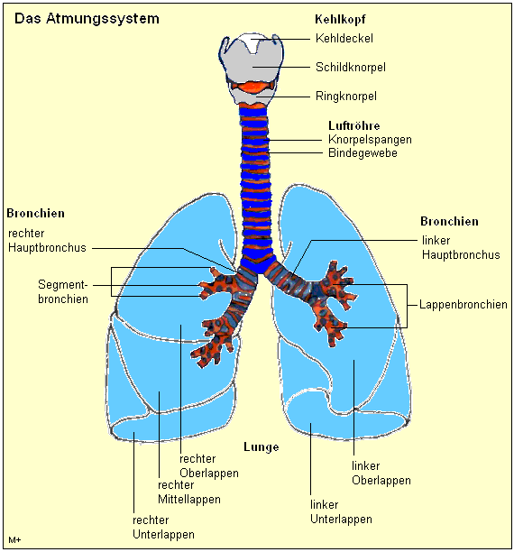 Nicht sichtbar dagegen sind die einzelnen Lungensegmente, in die sich die