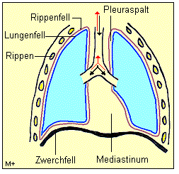 Brustwand festhält. Dadurch macht die Lunge jede Bewegung der Brustwand mit. Wird die
