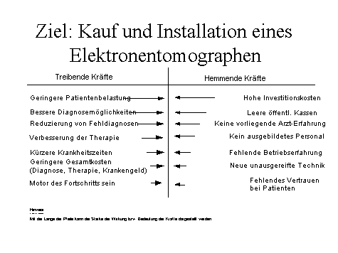 also Kräfte, die die Veränderung unterstützen und die hemmenden Kräfte, also die