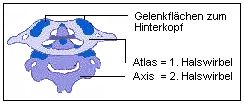 Gelenkflächen verbinden diesen ersten Halswirbel,und damit auch die gesamte