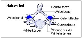 kompakten Wirbelkörper, an den sich der knöcherne Wirbelbogen anschließt. Dadurch