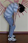 Position 2: Langsam nach vorne beugen und dabei unbedingt leicht in die Knie gehen. Den