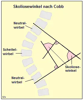 dann den Cobb-Winkel.Viele Röntgenbilder sind nicht groß genug, so dass die Geraden aus dem