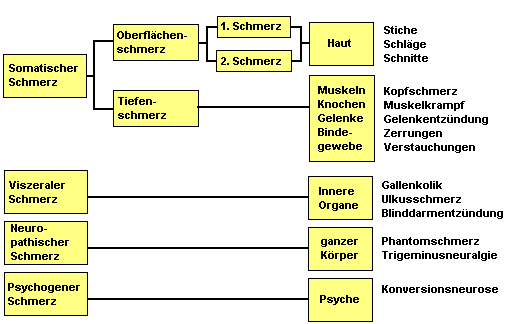 nach dem Ort ihrer Entstehung können Schmerzen unterschieden werden. Der somatische