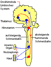 auf den aufsteigenden Schmerzbahnen ein Schmerzimpuls übermittelt, so ist die Reaktion