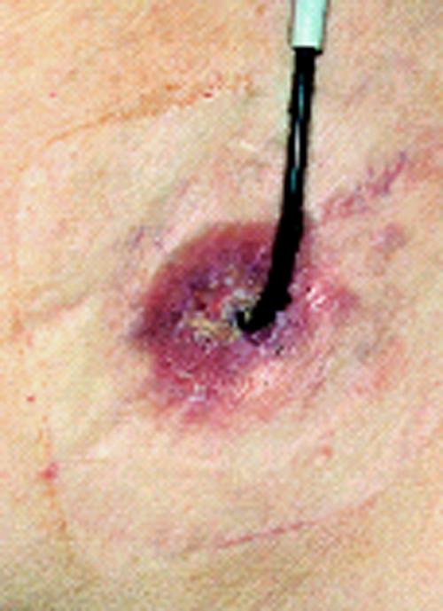 - durch Biopsie (möglichst mehrere Biopsien) aus der Wunde an der Grenze zum Schorf zur