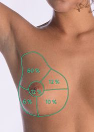 - 6 Prozent im äußeren unteren Quadranten der Brust.