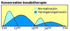der konservativen (oder konventionellen) Insulintherapie wird zu festgesetzten Zeiten eine