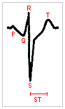 Q-Zacke, die etwas über der Grundlinie liegt. Dann folgt die R-Zacke mit einem sehr