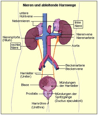 entspringen. Auf diese Weise sind sich die beiden Nieren rechts und links der Wirbelsäule