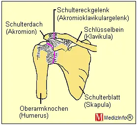 Akromioklavikulargelenk (Akromion: Schulterdach; Klavikula: Schlüsselbein). |