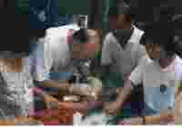 Bild 4301c: In der Armenambulanz in Dhaka behandelt der Münchner Kinderarzt Dr.