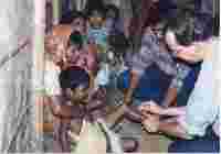 in der Ambulanz der "Ärzte für die Dritte Welt" in Kalkutta ein schwer