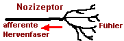 Nozizeptor, ist das verzweigte Ende einer Nervenfaser, die sich auf Schmerzreize (auch z.