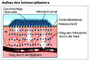 kontinuierlich aus dem Wirkstoffvorrat des Pflasters abgegeben und gelangt über die Haut