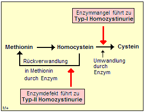 in Cystathionin blockiert. Dadurch entsteht eine Anhäufung von Homocystein.