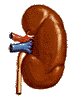 - Auf der rechten Seite wird ein großer Teil der Niere (von schräg oben und von vorn)